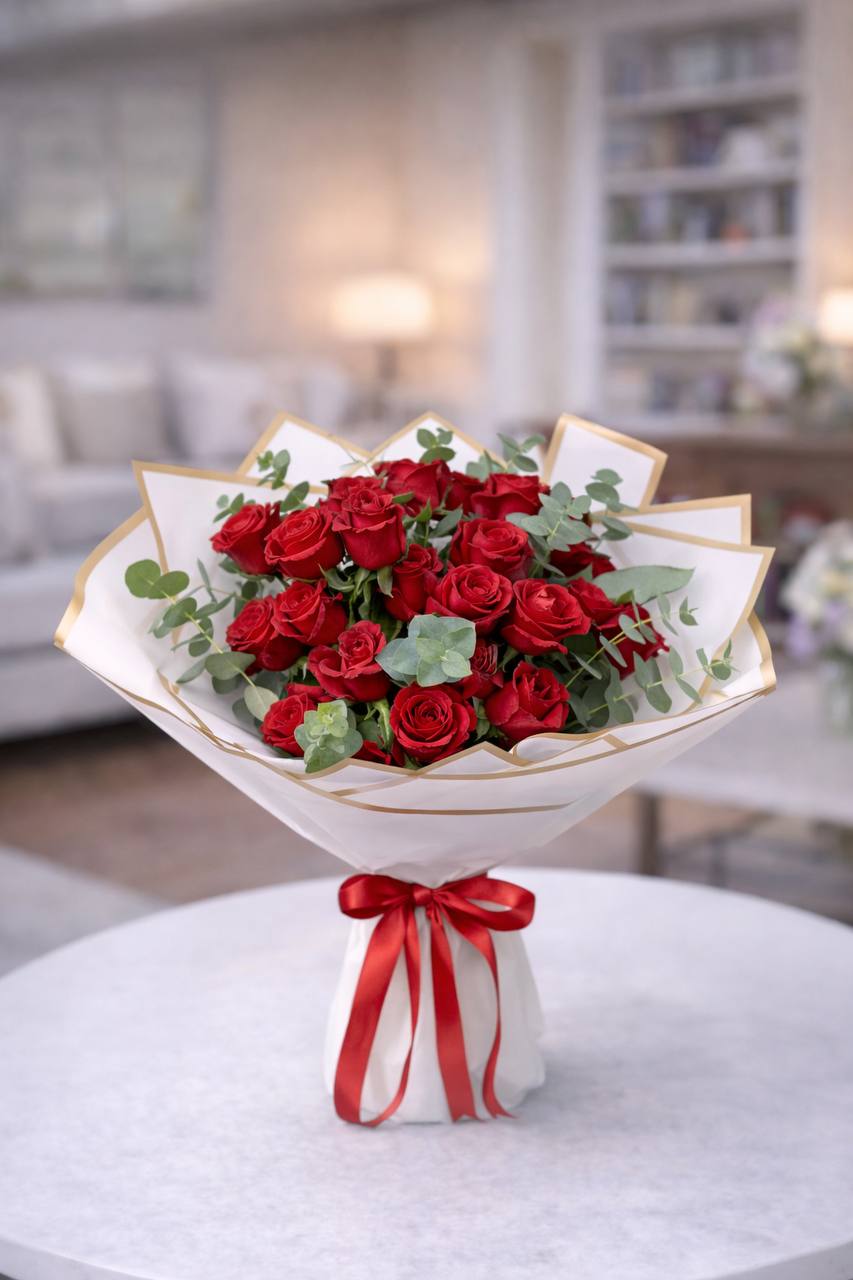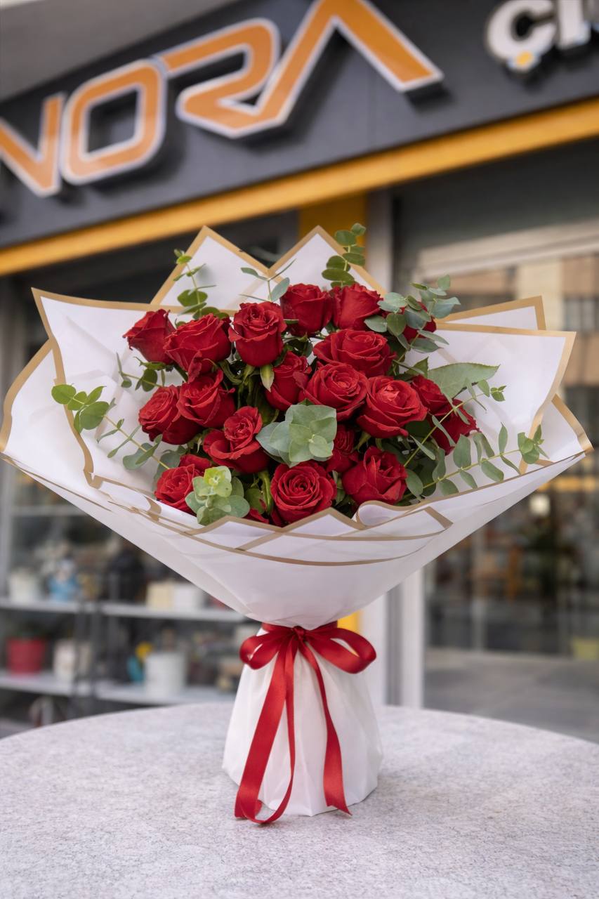 Okaliptus Süslemeli 20’li Kırmızı Gül Buketi