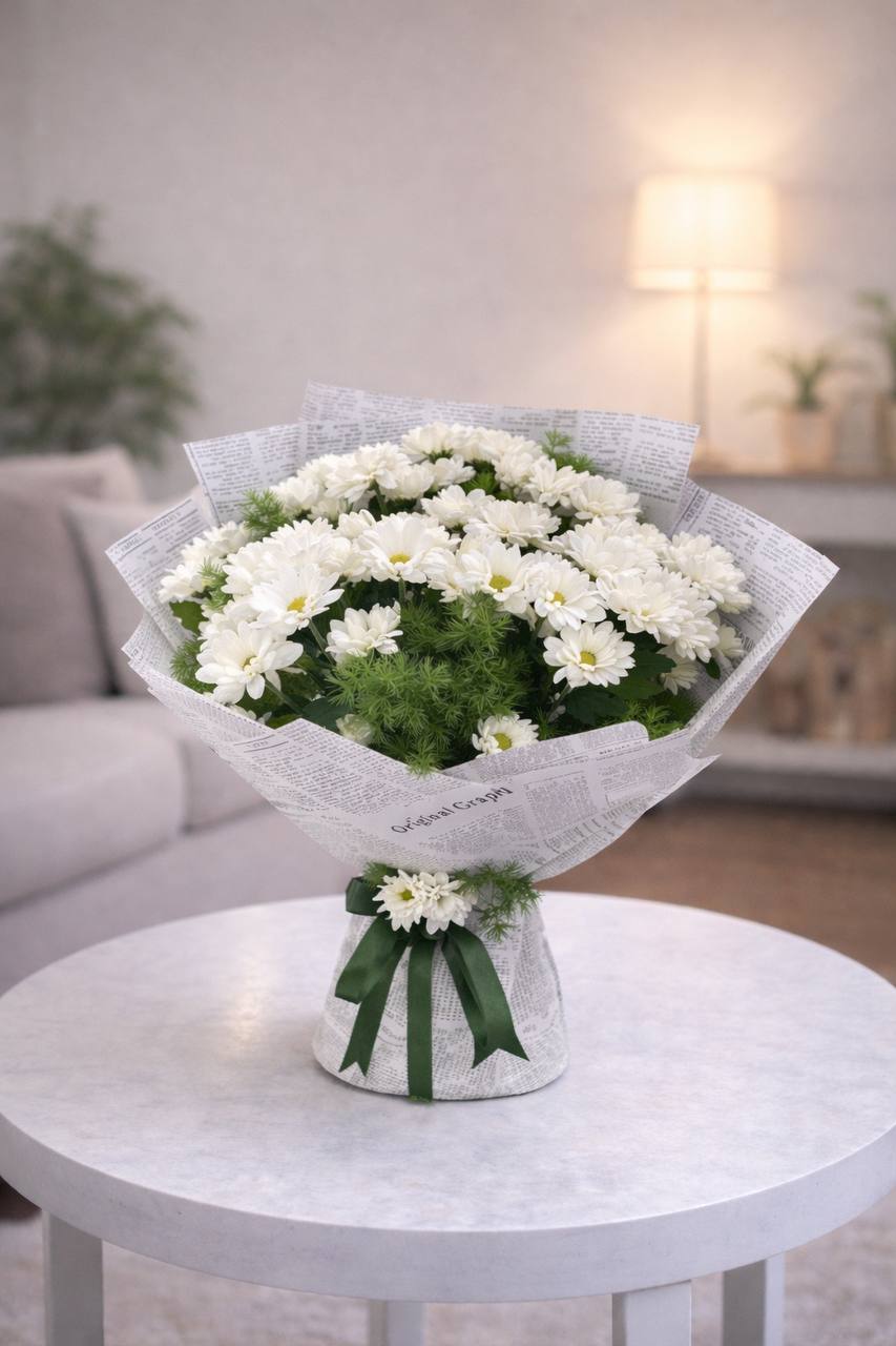 Gazete Buketinde Beyaz Papatyalar