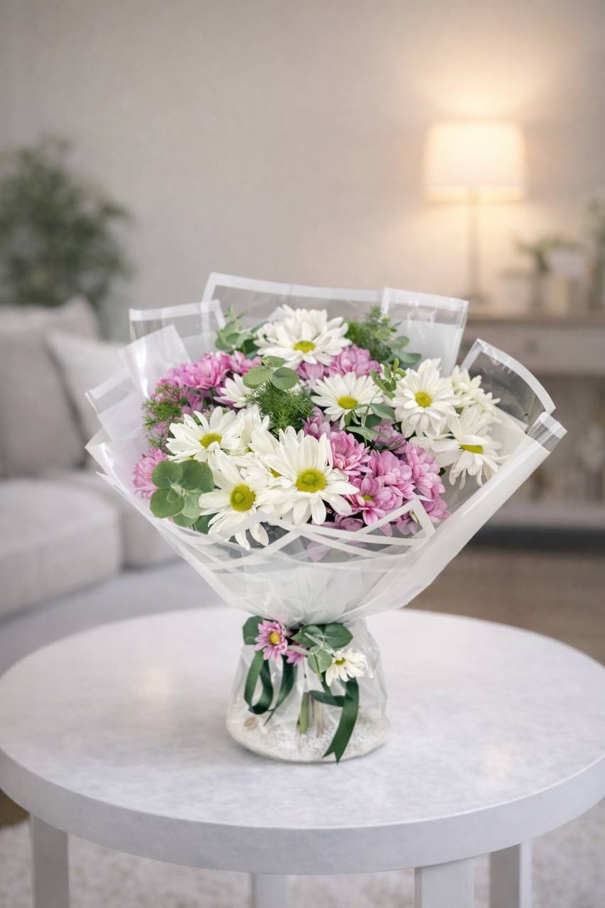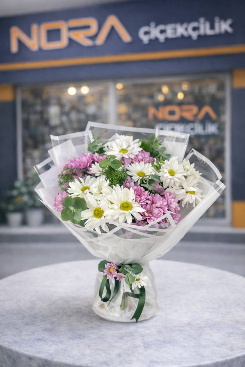 Pembe ve Beyaz Papatya Buketi